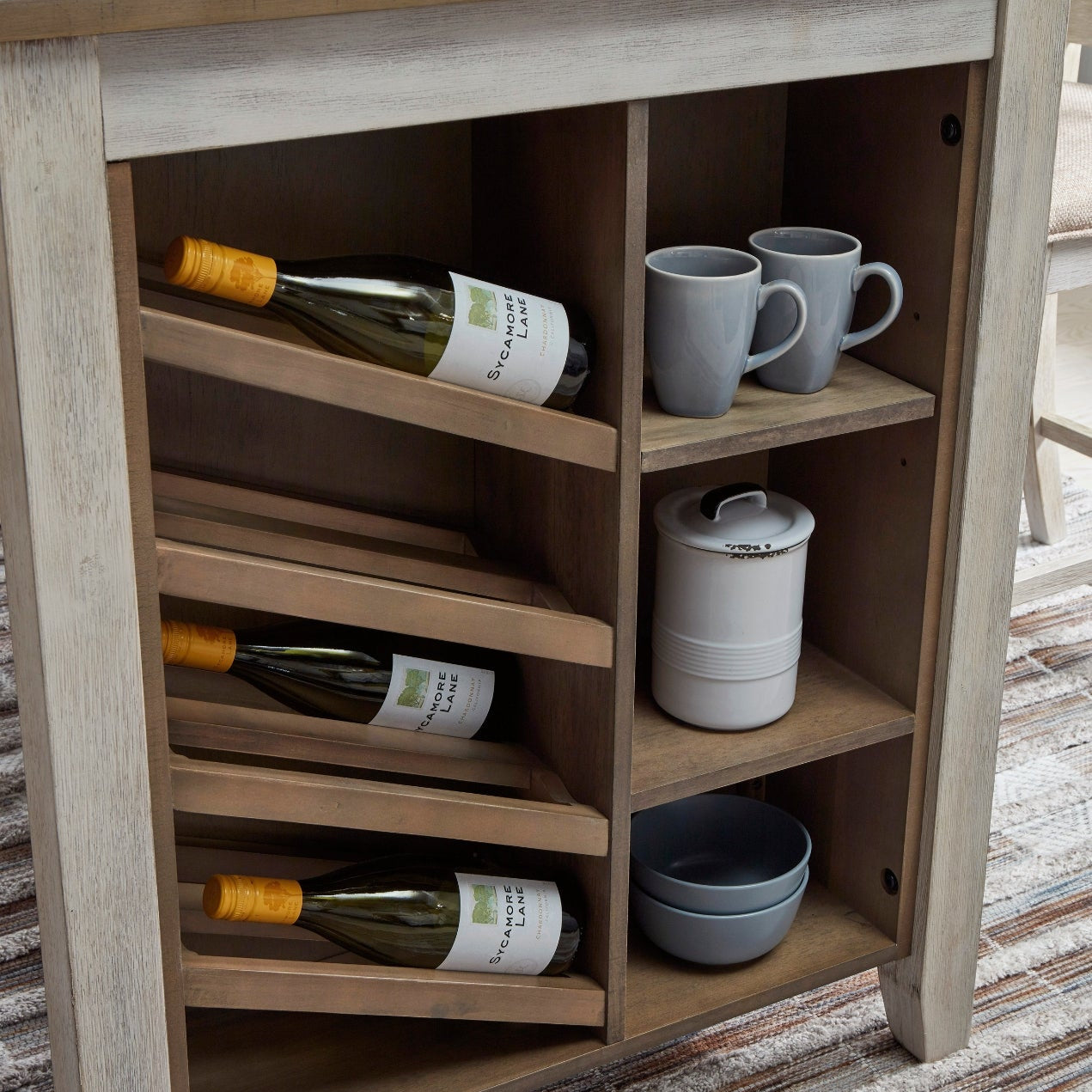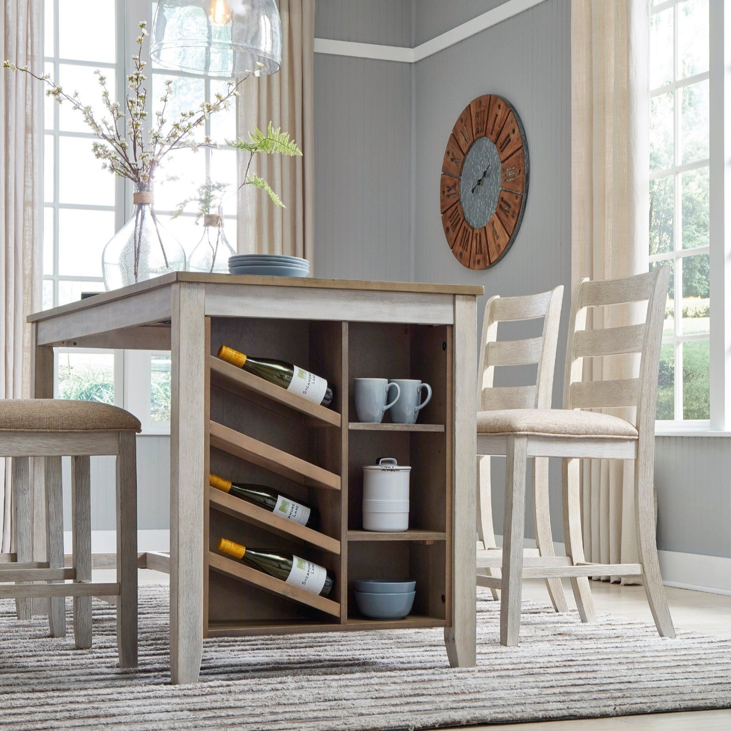 Pensée pour maximiser l’espace tout en ajoutant du caractère à votre intérieur, la table à hauteur de comptoir Skempton D394-32 de Ashley combine esthétisme bord de mer et fonctionnalité intelligente. Son plateau effet planches brun contrastant avec une base blanc grisâtre au fini frotté offre un charme patiné qui s’harmonise parfaitement avec un décor de ferme moderne ou côtier chic. Cette table ingénieuse intègre un casier à vin pour 8 bouteilles et deux étagères ouvertes, optimisant chaque centimètre dans les petites cuisines, coins repas ou studios.