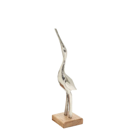 Sculpture en forme de cigogne en aluminium brut argenté