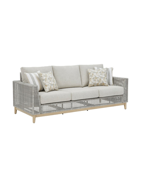 Sofa extérieur en tissu beige pâle & bois d'eucalyptus - Clare view