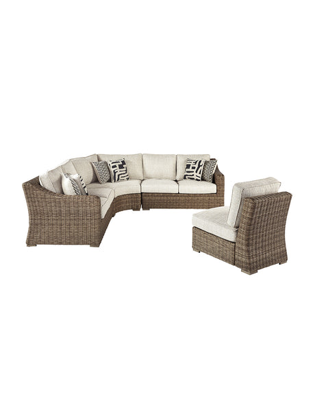 Ensemble de causeuses extérieures en tissu beige pâle avec coussins - Beachcroft
