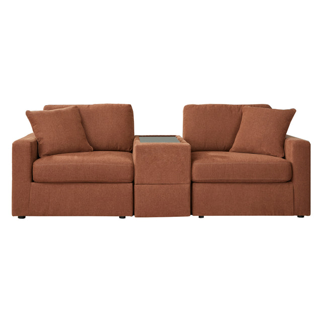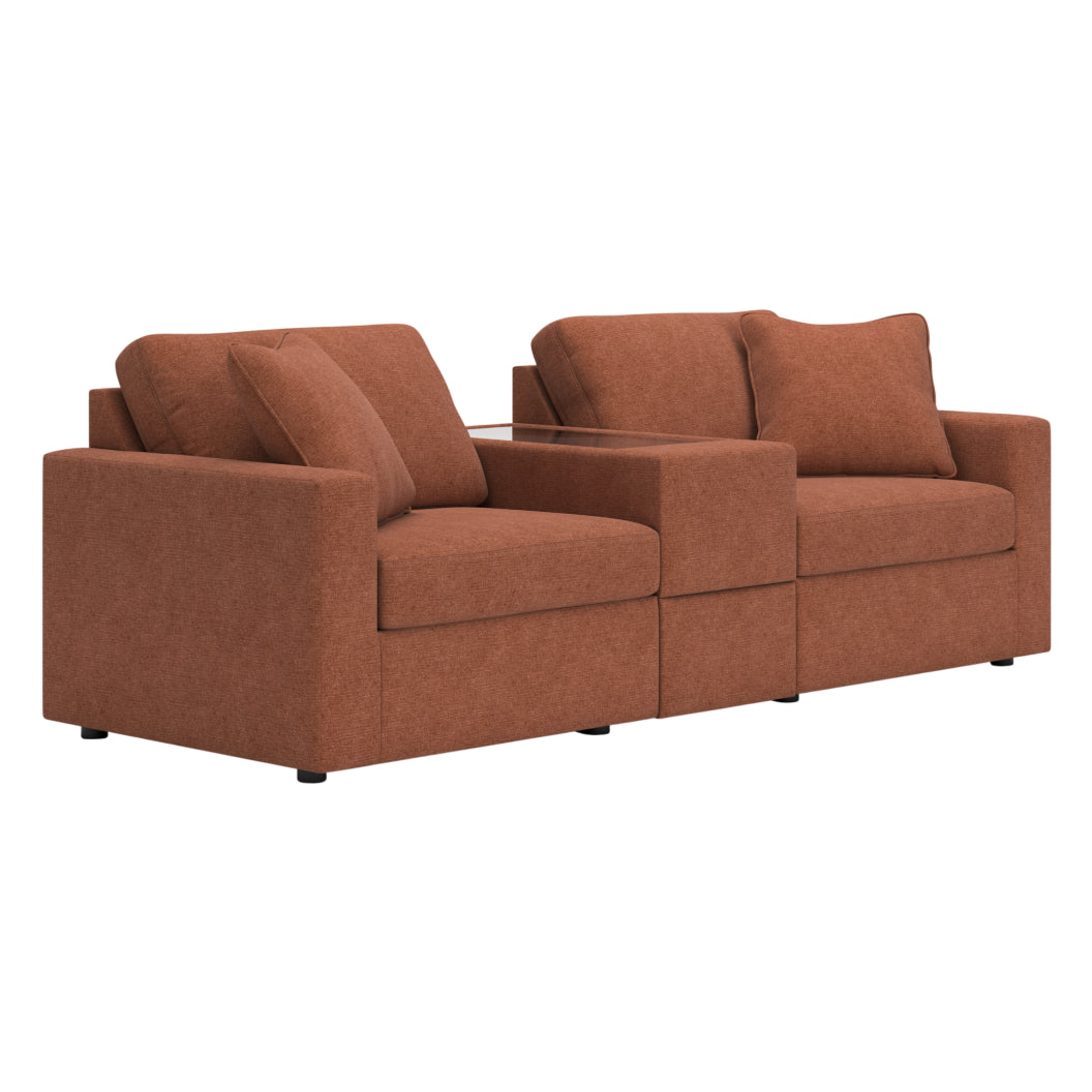 Sectionnel 3 pièces en tissu brun avec console - Modmax