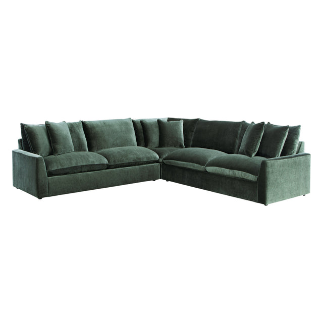Sectionnel 3 pièces en tissu vert jade avec 6 coussins - Carriage View