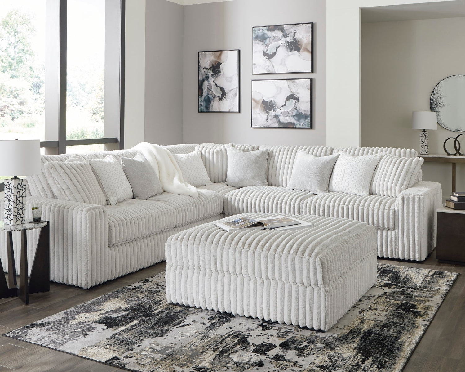 Sectionnel 3 pièces en velours côtelé blanc avec coussins - Stupendous