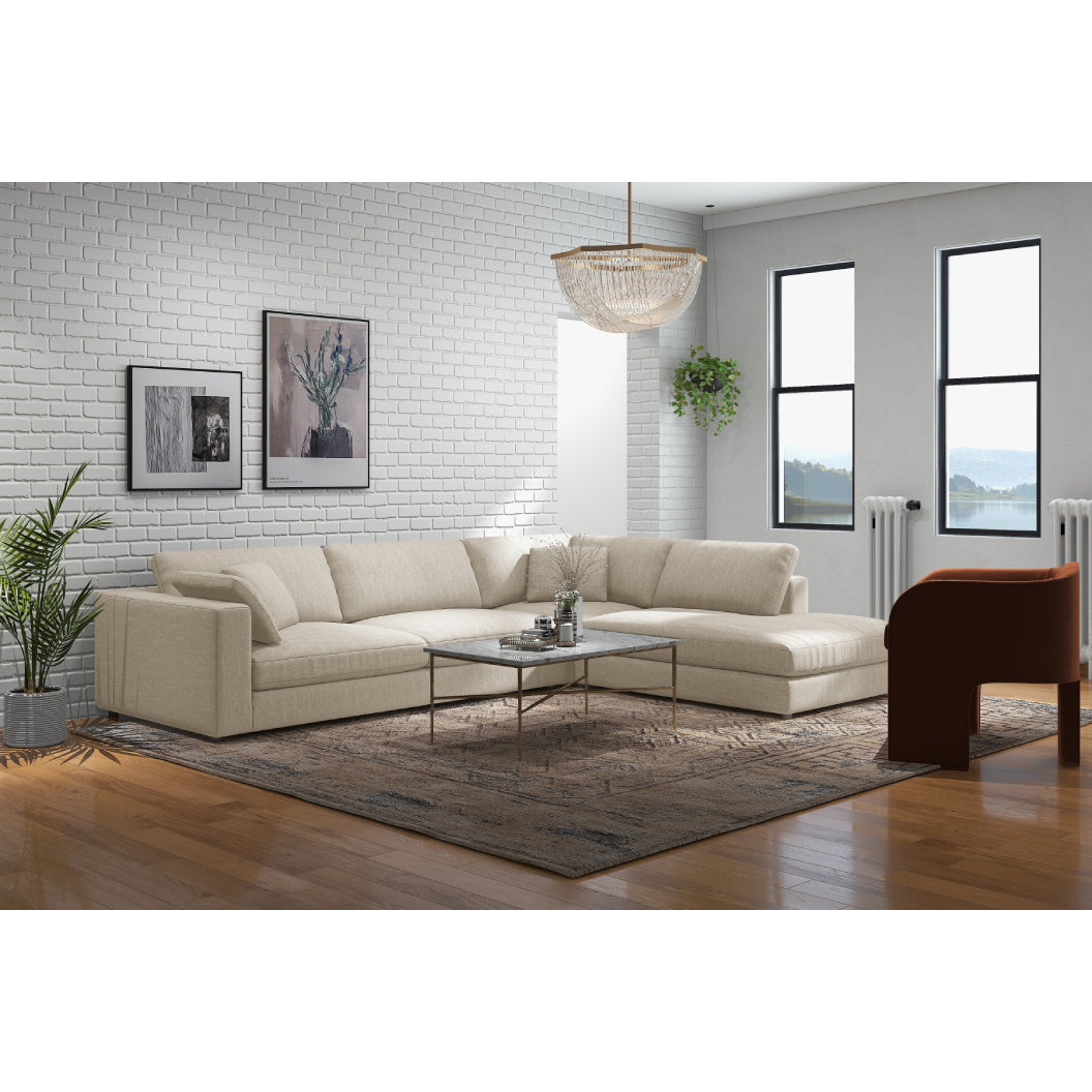 Sectionnel 3 pièces en tissu beige avec chaise longue & 3 coussins - Joelle2