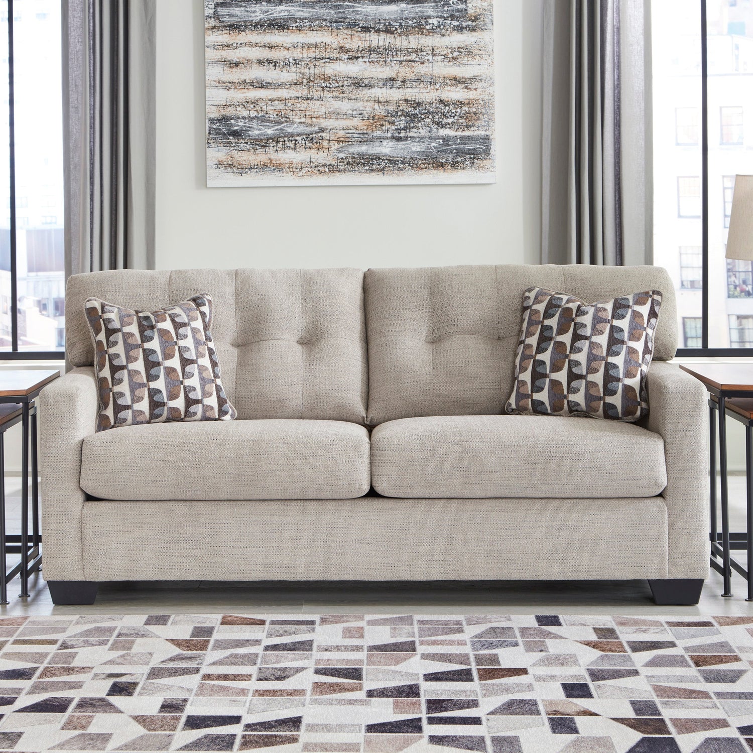 Pensé pour les espaces modernes à la recherche de praticité sans compromis sur le style, ce sofa-lit Mahoney 3100436 de Ashley incarne l’équilibre parfait entre tradition et fonctionnalité. Son dossier capitonné, ses lignes sobres et son revêtement doux multicolore apportent une touche de chaleur et de sophistication à votre intérieur. Compact et accueillant, il s’impose comme une solution élégante pour recevoir confortablement, de jour comme de nuit.