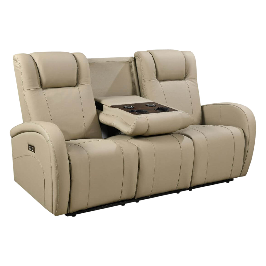 Sofa motorisé en tissu et en cuir avec table rabattable & chargeur sans fil - Marseille