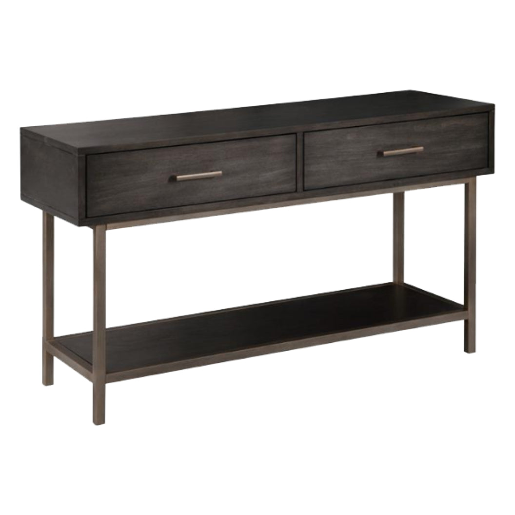 La table console Fulton T4574-73 de Magnussen séduit par son style rétro élégant qui associe le bois chaleureux et le métal d’étain raffiné. Son design met en valeur des lignes sobres et une conception robuste, idéale pour compléter un salon, une entrée ou un loft urbain. Pratique et esthétique, elle offre deux tiroirs fonctionnels et une étagère inférieure flottante qui renforcent son côté à la fois décoratif et utilitaire.