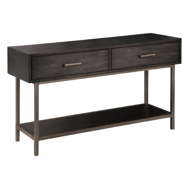 Table console en placage de noyer brun foncé avec 2 tiroirs - Fulton