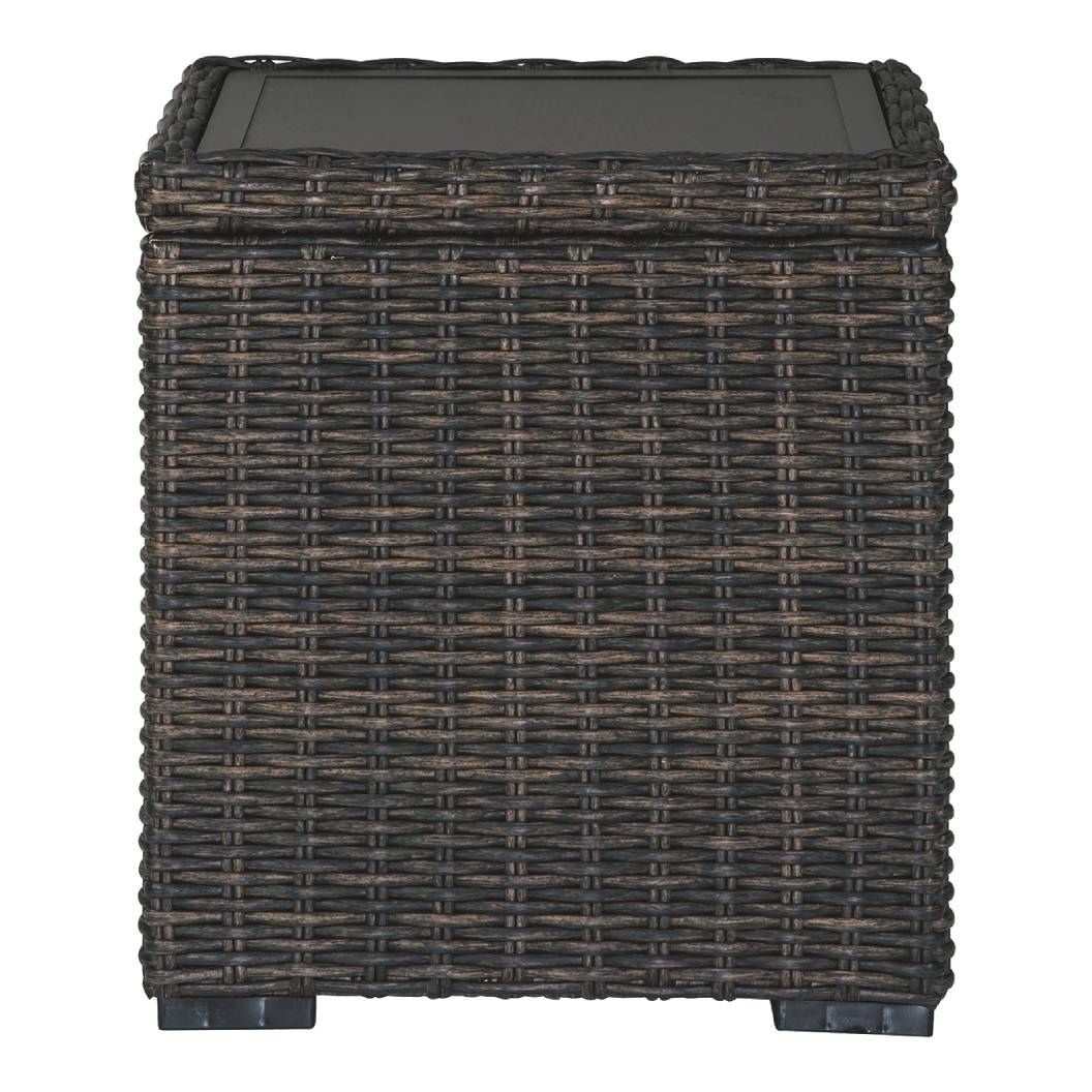 La table de bout Grasson Lane P783-702 de Ashley allie style contemporain et durabilité pour compléter avec finesse tout mobilier extérieur ou intérieur. Idéale pour accompagner un fauteuil ou une chaise longue, elle apporte une touche fonctionnelle à tout espace détente. Conçue pour résister aux intempéries, sa structure en osier de résine tressée à la main et son cadre en aluminium enduit de poudre garantissent un usage sans souci, saison après saison. Son design polyvalent et son fini soigné en font un choix pratique et raffiné, que ce soit sur une terrasse, dans un jardin ou dans une véranda.