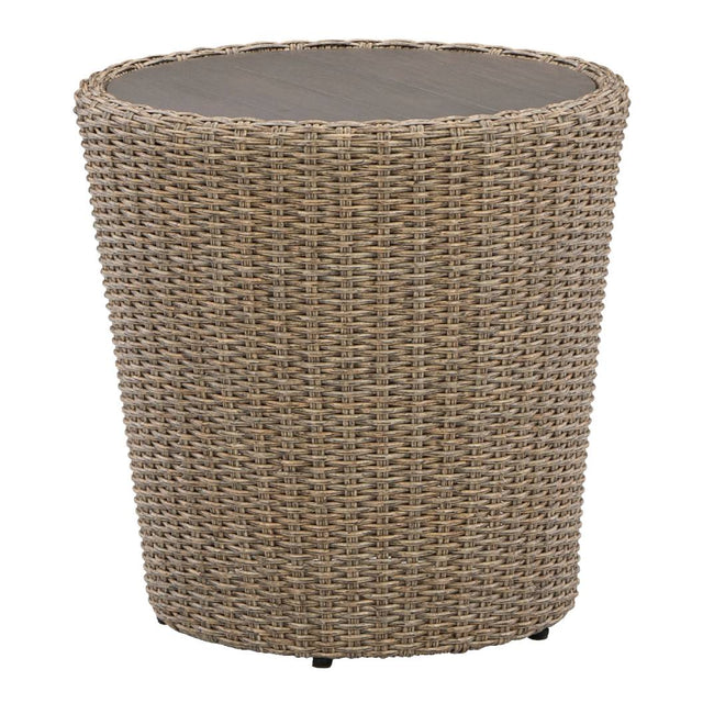 Table de bout extérieure en résine tressée et aluminium beige - Danson