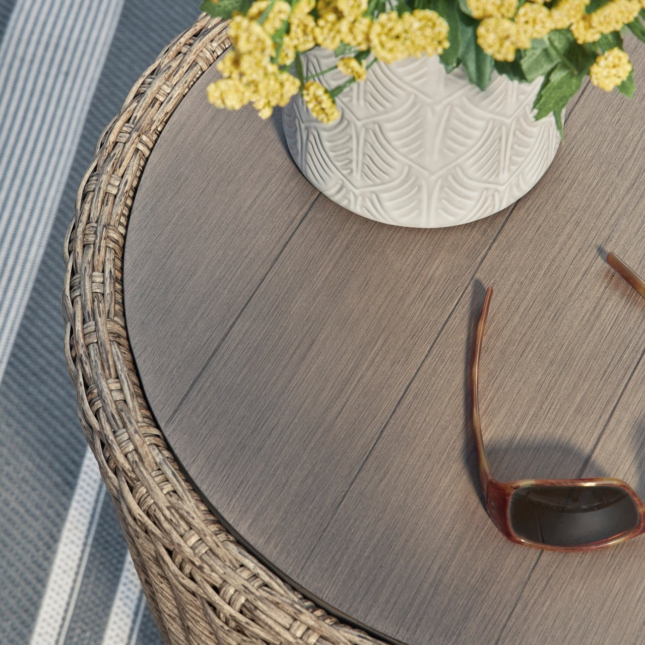 La table de bout d’extérieur Danson P505-706 de Ashley apporte une version contemporaine du confort décontracté, idéale pour compléter un coin salon extérieur. Son design équilibré marie l’élégance de l’osier en résine tissé à la main avec la robustesse d’un cadre en aluminium incurvé. Surmontée d’un dessus en aluminium, elle devient un support pratique et raffiné pour boissons, collations ou objets décoratifs, tout en s’intégrant harmonieusement à un environnement extérieur.
