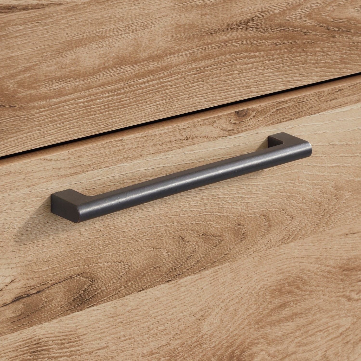 Les poignées au fini bronze antique apportent un contraste subtil avec le ton doré du meuble, rehaussant son esthétique avec une touche industrielle et élégante.