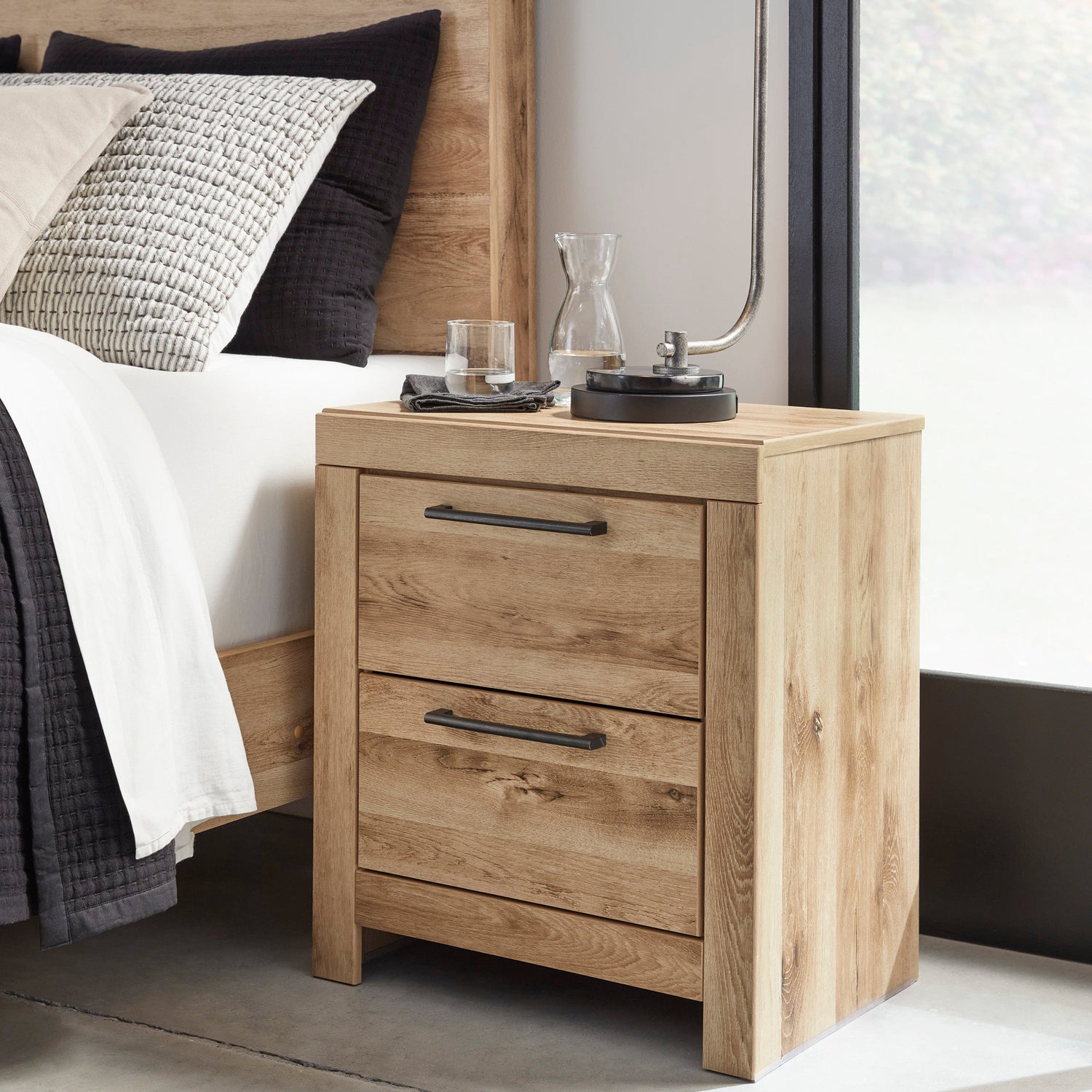 Table de chevet à 2 tiroirs en bois et placage brun clair - Hyanna