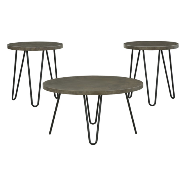 L’ensemble de tables Ashley Hadasky T144-13 apporte une touche contemporaine à tout espace de vie, grâce à son esthétique subtilement industrielle. Composé d’une table basse et de deux tables de bout assorties, cet ensemble harmonise fonctionnalité et design minimaliste. Les plateaux ronds au fini imitation pierre reposent sur des pieds en épingle à cheveux, créant une silhouette élégante qui s’adapte aussi bien aux intérieurs modernes qu'aux ambiances urbaines.