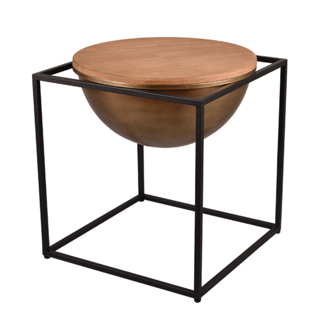 Table d'appoint en bois naturel demi-sphérique et métal noir - Celina