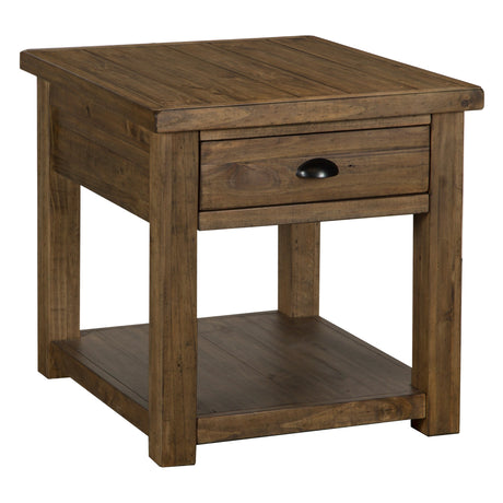 Table de bout en bois de pin brun antique avec 1 tiroir - Stratton