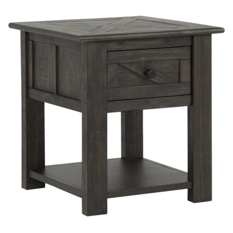 Table de bout en bois gris foncé rustique avec 1 tiroir - Garrett