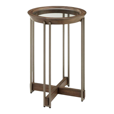 Table de bout en verre, en bois gris foncé et métal - Langston