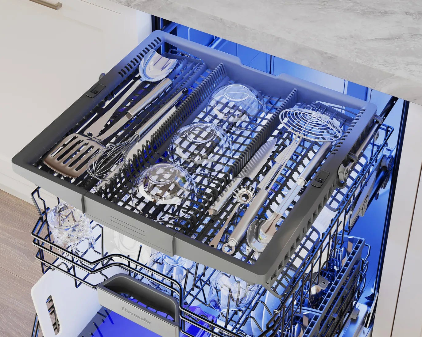 Ce tiroir supérieur est conçu pour accueillir des ustensiles longs, des accessoires de cuisson ou des petits objets fragiles, tout en libérant de l’espace dans les paniers inférieurs. Il améliore l’organisation interne du lave-vaisselle et contribue à une performance de lavage plus uniforme. -