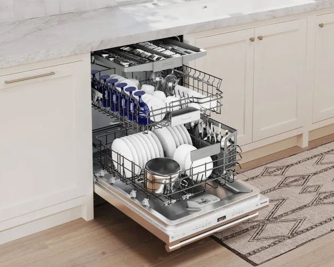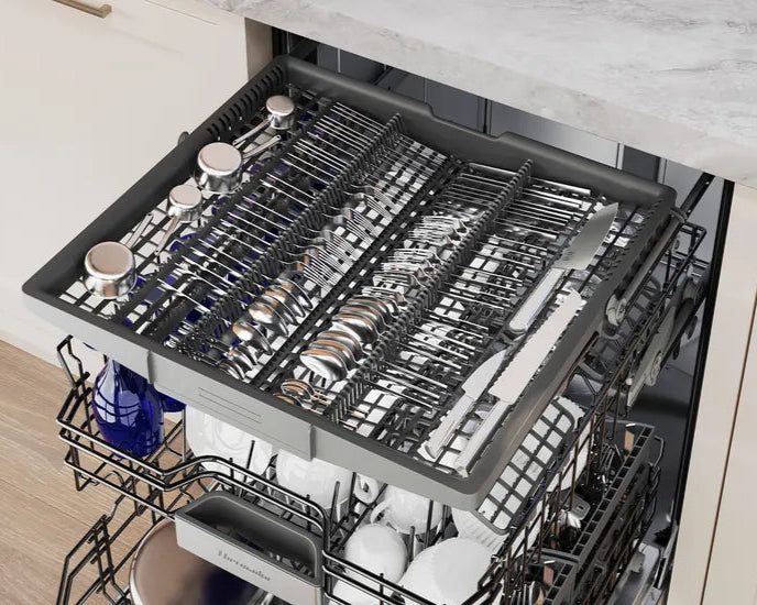 Ce troisième panier offre une flexibilité accrue pour le rangement des ustensiles, des couverts et des articles difficiles à placer, optimisant ainsi l'espace de chargement et améliorant l'efficacité du nettoyage. -