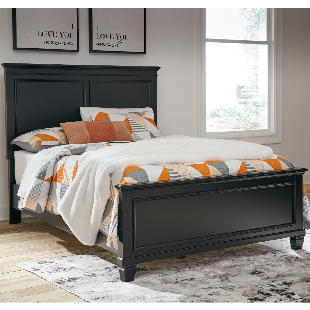 Le lit à panneaux Lanolee B687 de Ashley a un design décontracté qui évoque une atmosphère reposante et authentique, parfaite pour créer une chambre où règnent calme et confort durable. Sa structure solide en bois franc et MDF assure une stabilité remarquable et une longévité exceptionnelle, tandis que sa finition peinte en noir confère une allure raffinée et universelle. L’encadrement distinctif de la tête et du pied de lit apporte une profondeur visuelle subtile, soulignant le souci du détail propre à la collection Lanolee.