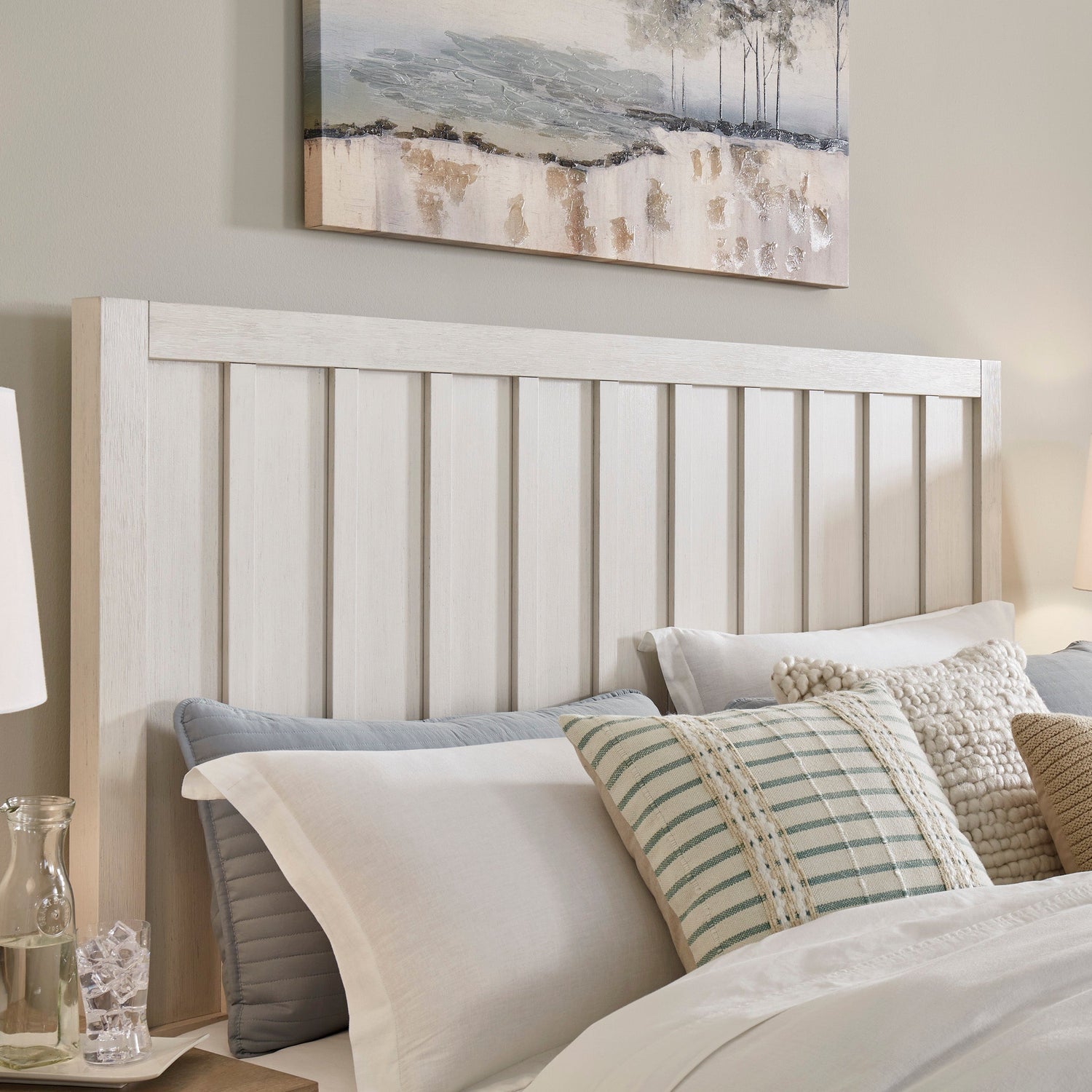 Le lit à panneaux Shaybrock B683-81/82/97 de Ashley incarne à la perfection le style ferme moderne, alliant authenticité rustique et élégance contemporaine. Sa finition bicolore — un blanc vieilli doux contrasté par un ton bois gris clair — crée une ambiance chaleureuse et apaisante. Fabriqué avec soin à partir de bois massif, de placages et de MDF de qualité, ce lit combine solidité, durabilité et esthétique raffinée. Disponible en format Grand (Queen) et Très grand (King), il s’adapte facilement à différents espaces tout en conservant sa prestance.