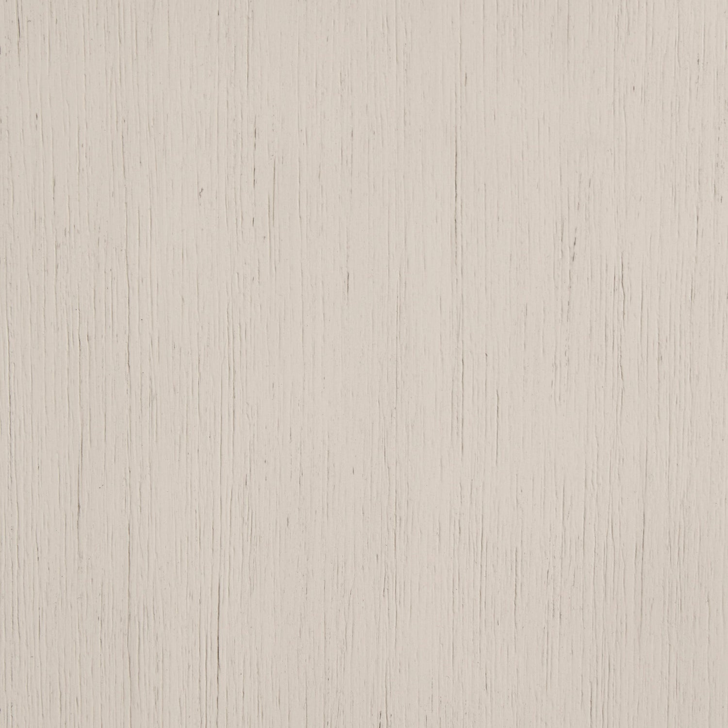 Le blanc vieilli met en valeur les détails sculptés, tandis que le ton bois gris clair ajoute de la profondeur et un contraste raffiné.