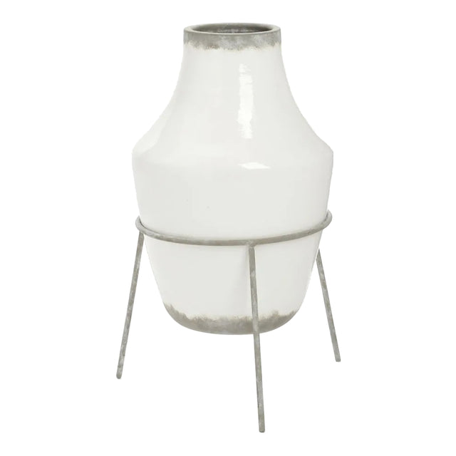 Ce vase 8390175 de Bovi Home en céramique blanche, accompagné d’un support en métal, offre une solution décorative à la fois esthétique et sécuritaire. Sa conception stable permet de mettre en valeur des tiges ou des compositions florales sans risque de renversement, tout en apportant une touche moderne à votre intérieur.
