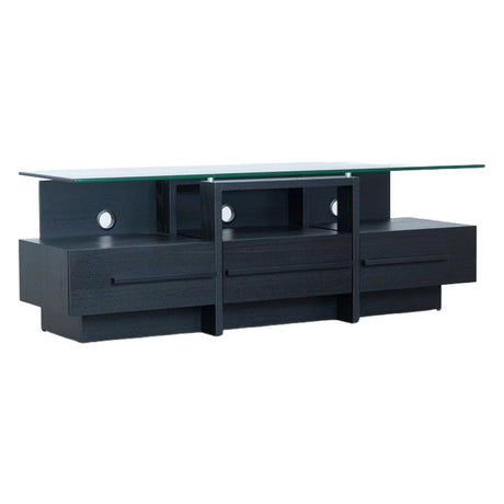Meuble de télévision en verre et bois/placage noir avec 3 tiroirs - Ross