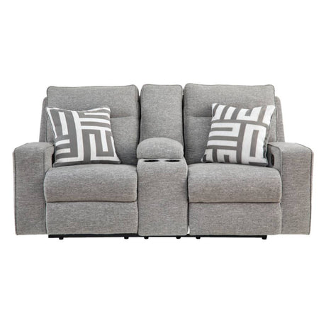 Causeuse motorisée en tissu gris pâle avec console - Biscoe