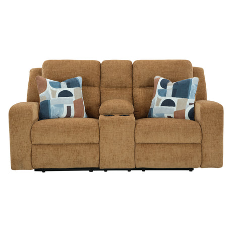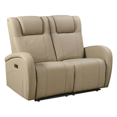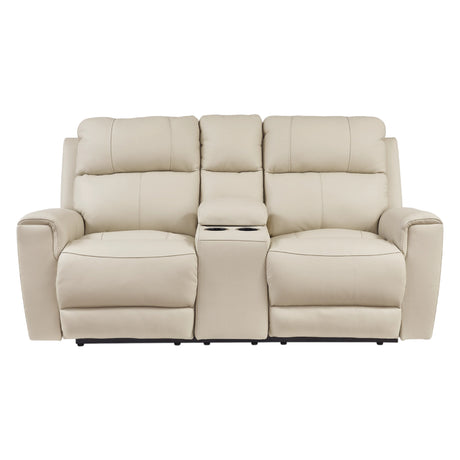 Causeuse motorisée en cuir beige avec console - Dahlmoore