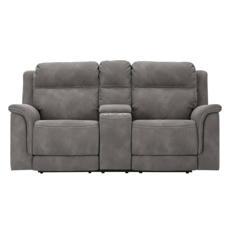 Causeuse motorisée en cuir gris foncé avec console - Boxmere