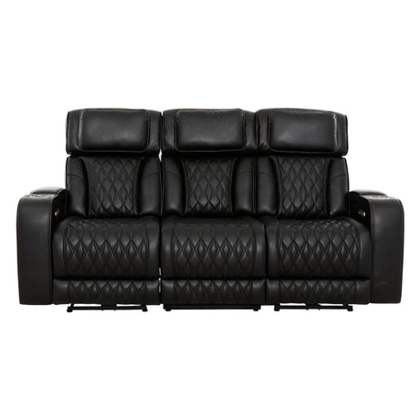 Sofa motorisé en cuir noir avec table rabattable & éclairage DEL - Colton