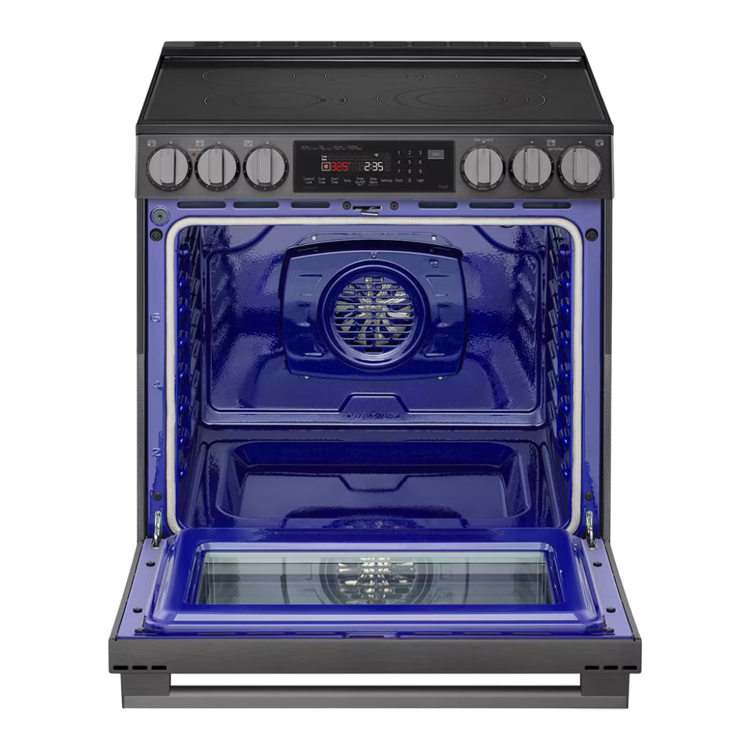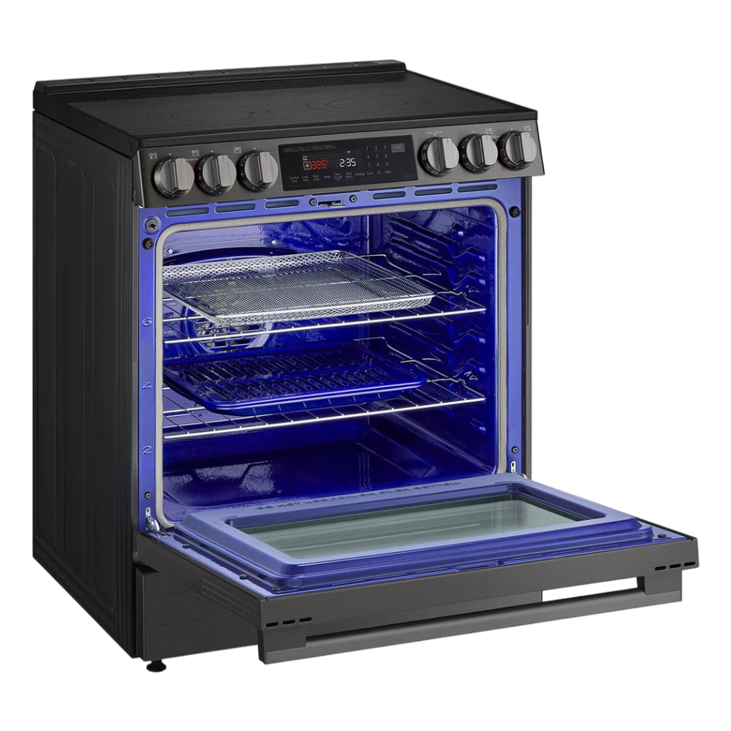 La cuisinière électrique encastrable LG LSEL6335ZE combine esthétique contemporaine et technologie de pointe. Sa capacité de 6,3 pi³ offre toute la polyvalence nécessaire pour préparer des repas généreux, tandis que sa finition en acier inoxydable noir PrintProof™ ajoute une touche sophistiquée à votre cuisine. Grâce à la porte InstaView®, il suffit de frapper deux fois pour vérifier la cuisson sans perdre de chaleur. Équipée du système ProBake Convection®, de la friture à l’air intégrée et d’un élément radiant 3-en-1, elle répond aux besoins des cuisiniers modernes exigeant précision, puissance et facilité d’entretien.