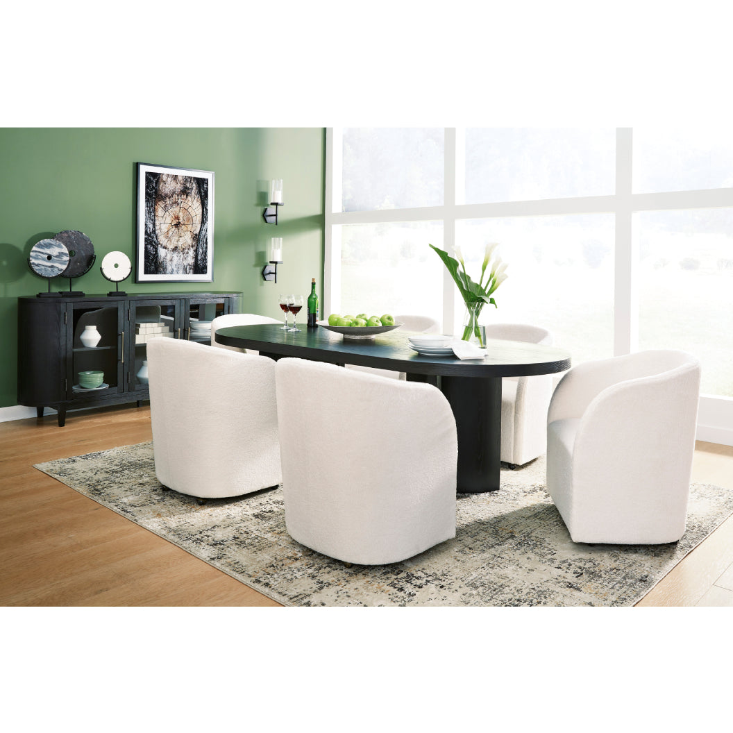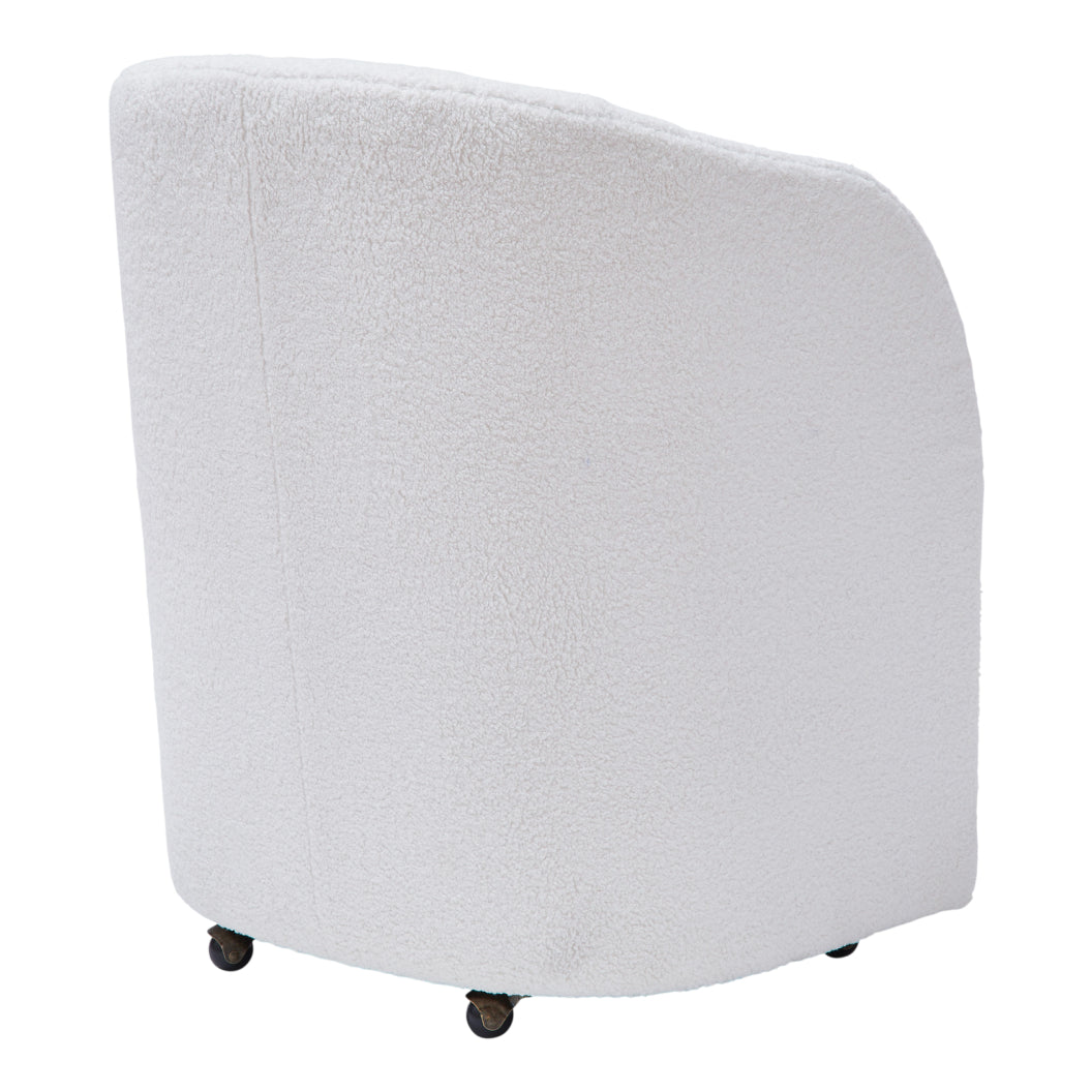 La chaise de salle à manger Rowanbeck D821-02A apporte une touche sophistiquée inspirée du style art déco à votre espace repas. Sa silhouette courbée attire le regard et rehausse immédiatement un décor contemporain. Le revêtement en bouclé ivoire offre une texture douce et actuelle, tout en restant facile à agencer. Les roulettes intégrées ajoutent une dimension pratique, idéale pour un usage polyvalent autour de la table ou dans un espace de vie.