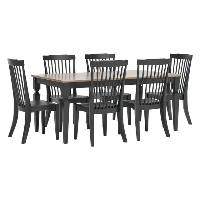 L’ensemble de salle à manger Brenkerton PCD591-25/01 de Ashley, composé d’une table rectangulaire et de six chaises assorties, crée un espace chaleureux et convivial pour les repas du quotidien. Le contraste entre le plateau brun grisâtre, le piètement noir et les chaises noires apporte une allure cohérente et intemporelle. Cet ensemble est idéal pour les moments de partage en famille ou entre amis, dans une ambiance naturelle et accueillante.