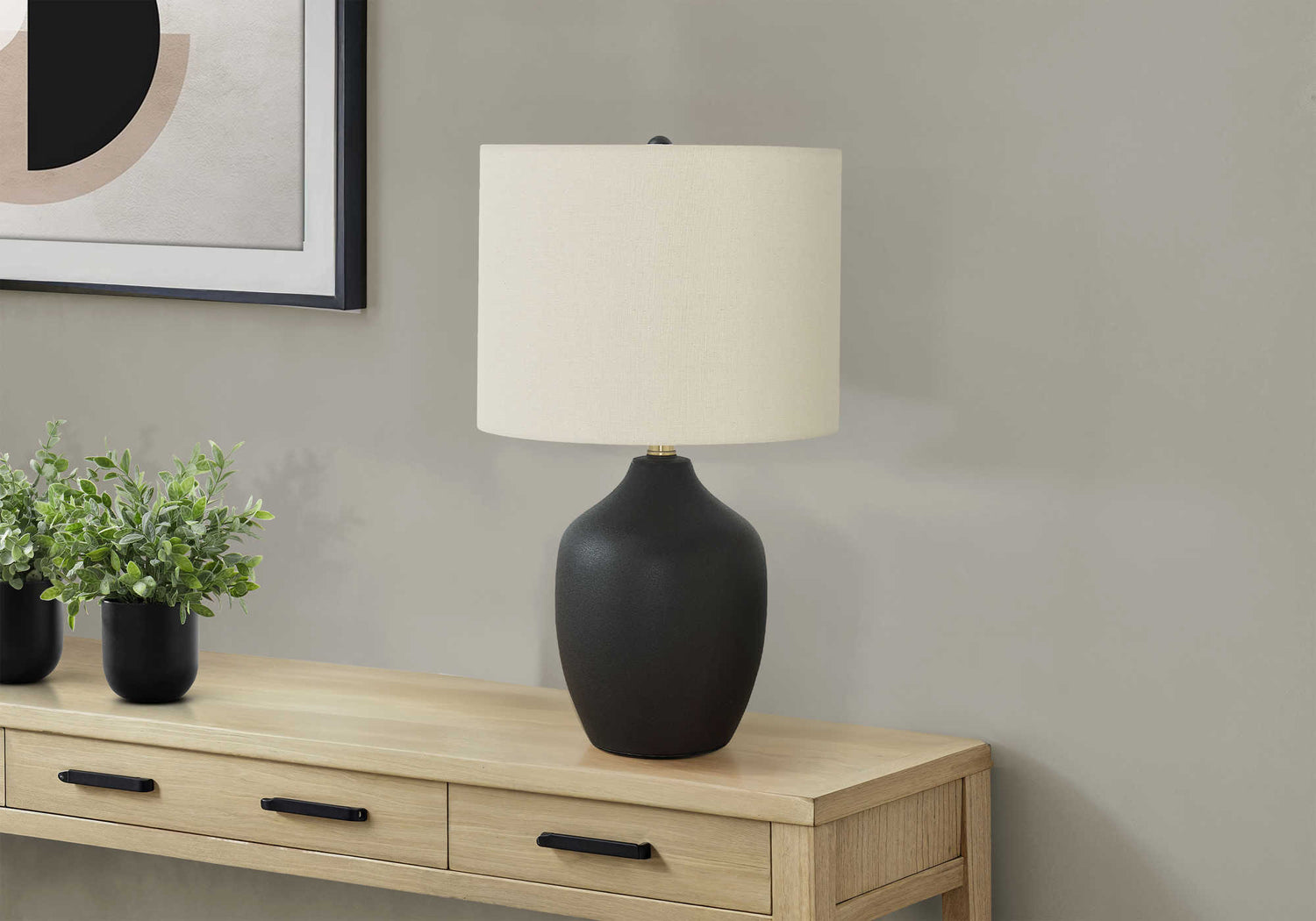 Cette lampe de table Monarch de 22 pouces est un choix élégant et fonctionnel pour illuminer vos espaces de vie. Son design transitionnel associe une base en céramique noire lisse et un abat-jour tambour en lin ivoire, créant un équilibre parfait entre modernité et intemporalité. Idéale pour le salon, la chambre ou le bureau, elle s’intègre facilement à différents styles de décoration. Compacte mais raffinée, elle apporte à la fois éclat et sophistication tout en restant pratique grâce à ses dimensions bien adaptées aux tables de chevet, consoles et tables d’appoint.