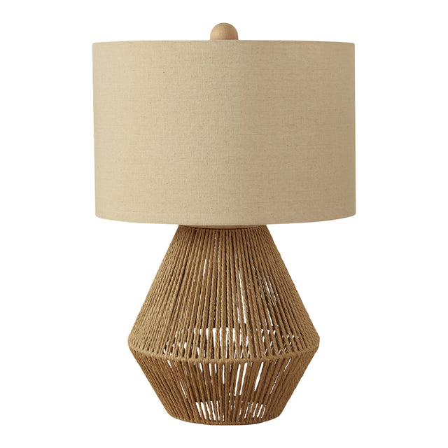 Cette lampe de table Monarch de 22 pouces allie style boho et fonctionnalité pour illuminer votre intérieur avec élégance. Sa base ouverte en corde de lin brun texturée, associée à un abat-jour tambour en lin beige et un embout en bois naturel, apporte une touche chaleureuse et décontractée à un salon, une chambre ou un bureau. Polyvalente, elle s’intègre facilement sur une table de chevet, une console ou une table d’appoint.