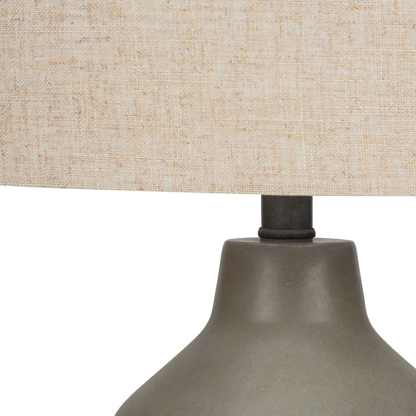Cette lampe de table Monarch combine l’élégance d’une inspiration vintage avec une allure contemporaine. Sa base en béton gris lisse et épurée contraste harmonieusement avec un abat-jour tambour en tissu beige, le tout rehaussé d’un embout noir discret. Avec ses 24 pouces de hauteur, elle s’intègre parfaitement dans une chambre, un salon ou un bureau, apportant une touche moderne et chaleureuse. Conçue avec des matériaux durables, elle allie esthétisme et fiabilité pour une utilisation au quotidien.