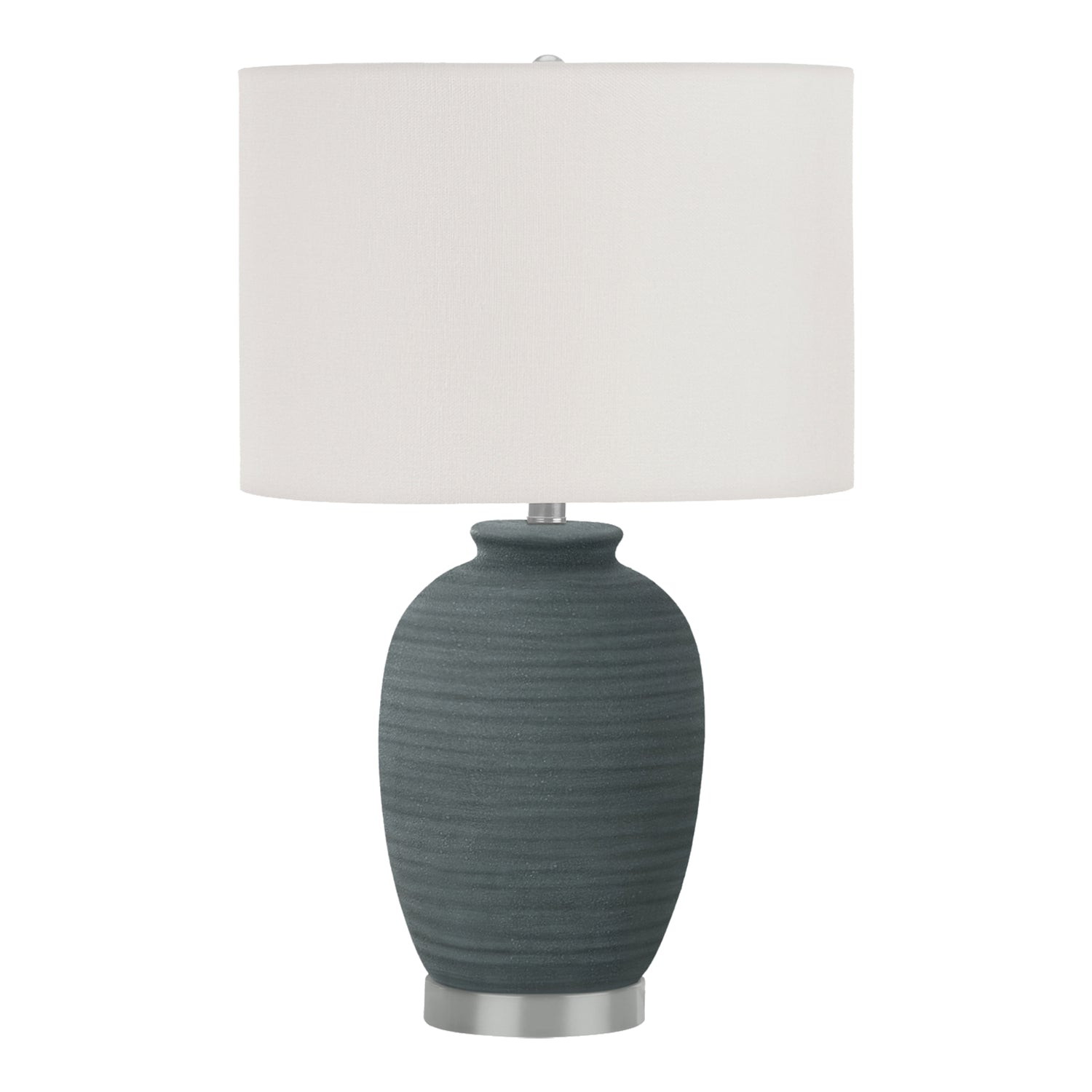 Cette lampe de table Monarch se distingue par son design contemporain alliant une base en céramique bleue texturée, un pied en métal argenté et un abat-jour tambour en tissu ivoire. Haute de 24 pouces, elle apporte une touche de raffinement à un salon, une chambre ou un bureau tout en restant polyvalente pour différents styles d’intérieurs. Élégante et durable, elle constitue un accent décoratif parfait sur une table d’appoint ou une table de chevet. Conçue avec des matériaux de qualité, elle allie esthétique et fiabilité pour un éclairage fonctionnel et décoratif.
