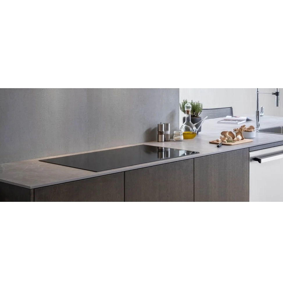 - Des capteurs intelligents intégrés dans la surface en verre détectent automatiquement la taille de vos casseroles, ajustant la zone chauffée pour s'adapter à leur empreinte. Cela rend le chauffage de chaque zone d'induction plus ciblé et plus efficace.
